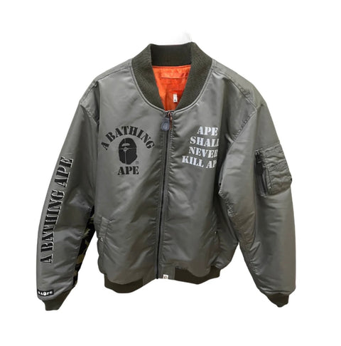 BAPE SOLID CAMO NYC LOGO VARSITY BOMBER NAVY