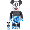 BEARBRICK X BAPE MICKEY MOUSE 400% & 100% SET BLACK/BLUE CAMO