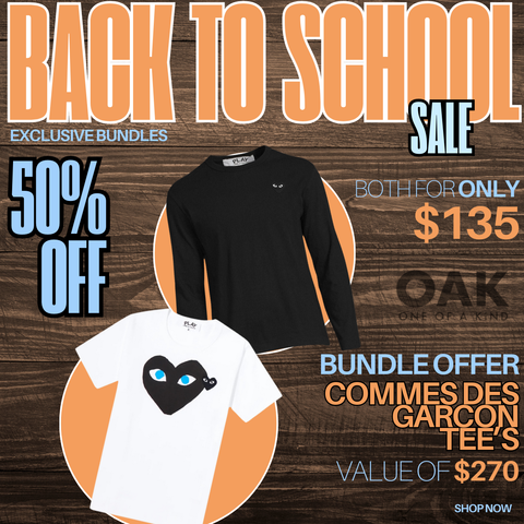 *Bundle offer includes both COMME DES GARÇONS PLAY BLACK HEART BLUE EYES T-SHIRT WHITE and COMME DES GARÇONS PLAY BLACK HEART LONG SLEEVE BLACK (any size combination in stock).*