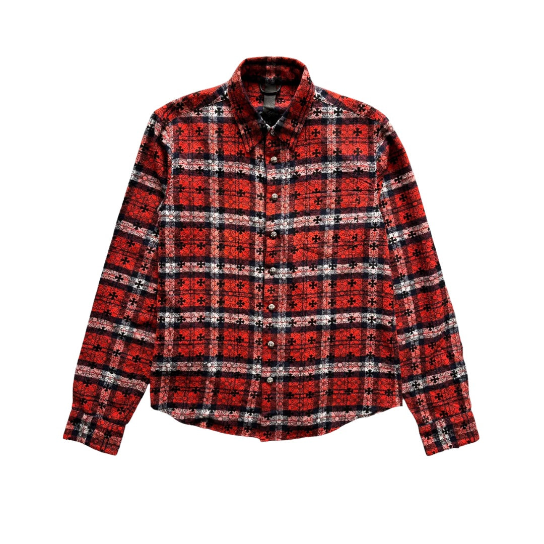 CHROME HEARTS LOOSE ENDS BUTTON UP FLANNEL RED