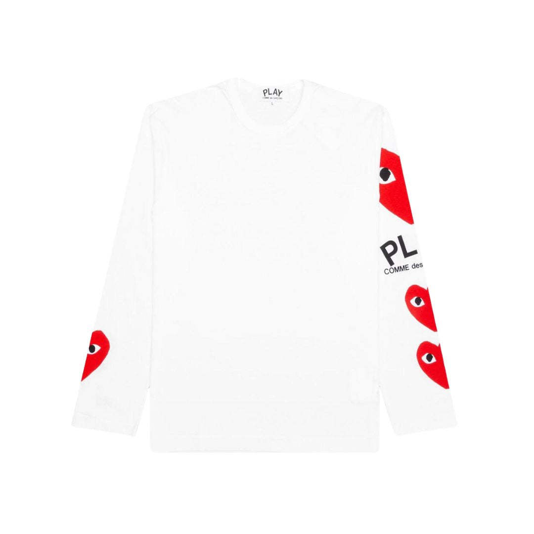 COMME DES GARÇONS PLAY RED PRINTED SLEEVES LONG SLEEVE WHITE
