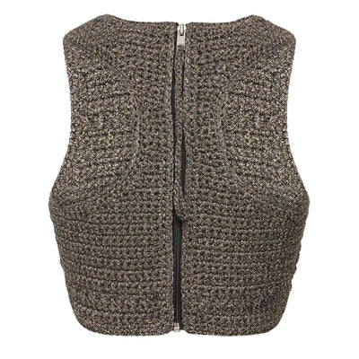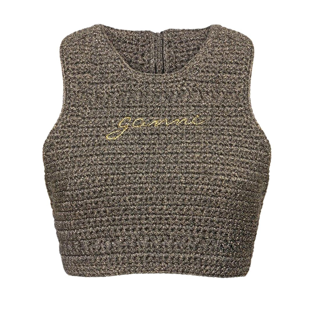GANNI CROCHET RACERBACK TOP BLACK/GOLD