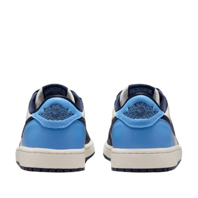 The Jordan 1 Low OG Obsidian UNC features a classic colorway inspired by the University of North Carolina, blending obsidian blue and white/cream leather with UNC-inspired accents. This sleek, low-top design combines retro style with modern comfort, showcasing the iconic Nike Swoosh and classic Air Jordan branding for a timeless look.