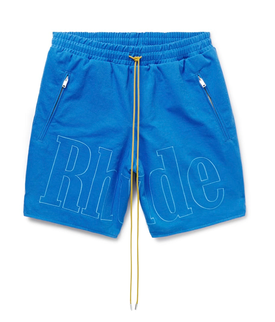 RHUDE PRINTED LOGO SHORTS BLUE